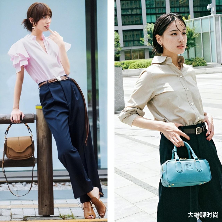 衬衫配黑色裤子的经典组合,通过一些小技巧也能焕发新意。秘诀在于选择合身衬衫搭配宽松裤子,打造时尚比例,避免“新员工感”。最后搭配一款有型的彩色包包,整体造型立刻亮眼出彩。