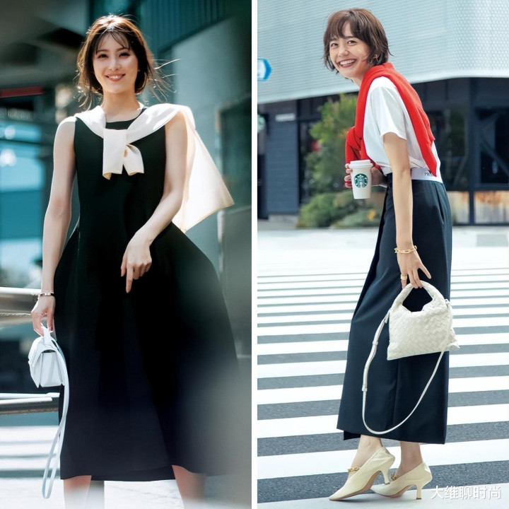 在聚餐或招待会等正式场合,华丽的黑色连衣裙非常适合。选择突出腰线的喇叭裙设计,增添戏剧感。搭配一件白色开衫披肩,不仅应对空调,还提升成熟气质。